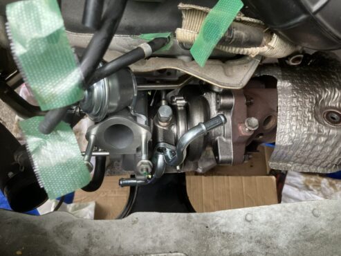 そんなに難しい作業ではないのですが、タービンを外すためにエンジンマウントを外すのが一番の手間でした。(>_<)